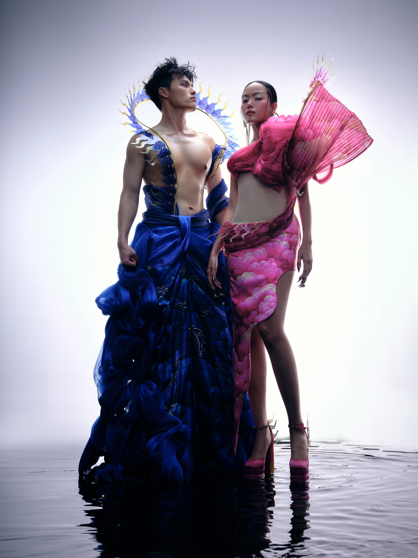 “Tất cả họa tiết hoa văn trên bộ sưu tập mang tính độc bản do tự tay tôi thử nghiệm, thiết kế để phù hợp với ý đồ của bộ sưu tập”, NTK trẻ Jang Tao chia sẻ.