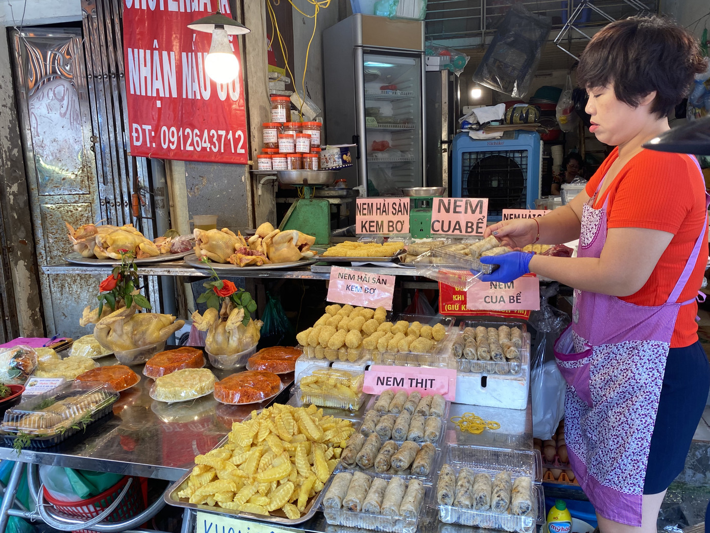 Tại khu chợ Hàng Bè – Gia Ngư (Hà Nội), không thấy tình trạng các cửa hàng tất bật làm cỗ chay cho khách mua về. Có chăng chỉ là một số đồ chay có sẵn tại quầy như bánh bao, nem hoa quả, canh củ quả bày ngay trên vỉa hè cạnh đường nhựa xe chạy, không có tủ bảo quản và không biết chế biến từ bao giờ