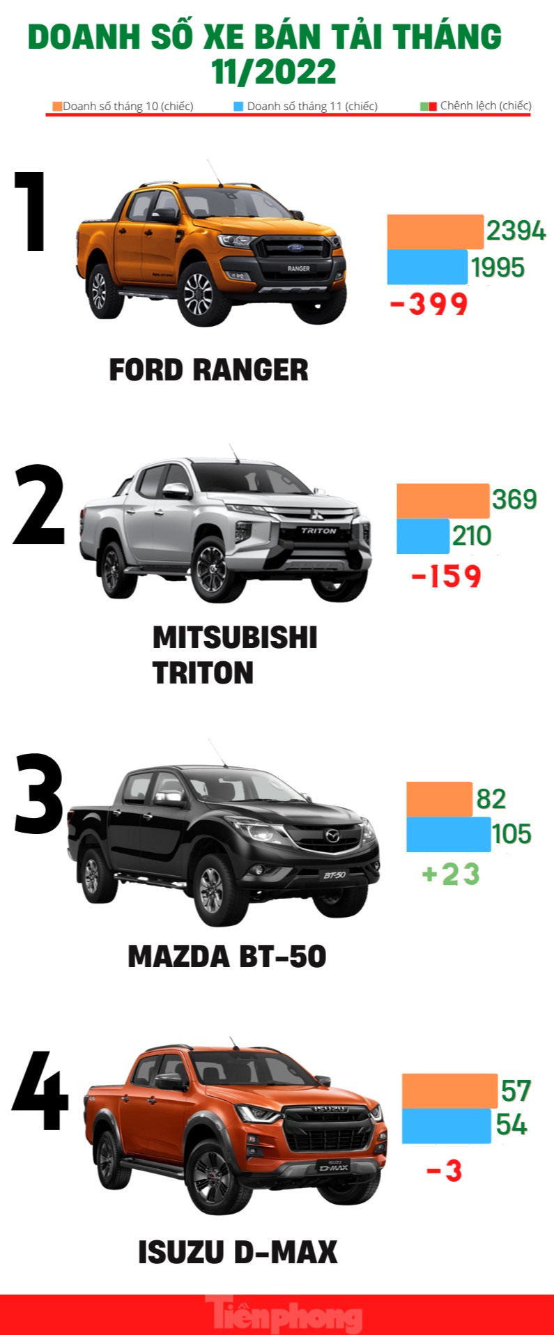 Doanh số xe bán tải tháng 11