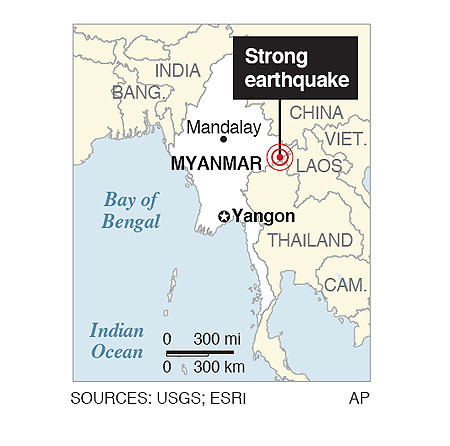 Các quan chức Myanmar cảnh báo, thương vong có thể sẽ tiếp tục tăng lên tại các khu vực lân cận với động đất. Một quan chức y tế cho biết, 11 người đàn ông và 13 phụ nữ đã thiệt mạng khi động đất xảy ra.