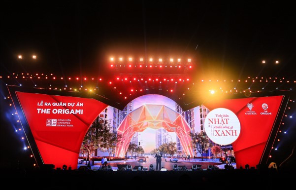 Lấy cảm hứng từ tên gọi của dự án “The Origami”, sân khấu chính được thiết kế như cánh hạc giấy thể hiện hình ảnh hai cánh sải rộng, vút bay mang theo hi vọng và niềm lạc quan về một tương lai tươi sáng, thành công. Ngay ở phần đầu của buổi lễ, những thước phim mãn nhãn về The Origami được hé lộ, đây là dự án nâng tầm phong cách sống kiểu Nhật, tạo nên đẳng cấp khác biệt, hứa hẹn đem tới cuộc sống xanh chưa từng có