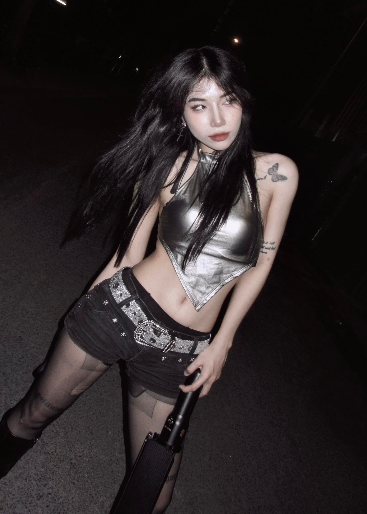 "Em Xinh" LyHan sở hữu vóc dáng mảnh mai, thần thái "soái tỷ" lạnh lùng. Giọng ca đến từ Thanh Hóa yêu thích trang phục tông đen cuốn hút, có thiết kế cấu trúc lạ mắt, ôm sát tôn dáng.
