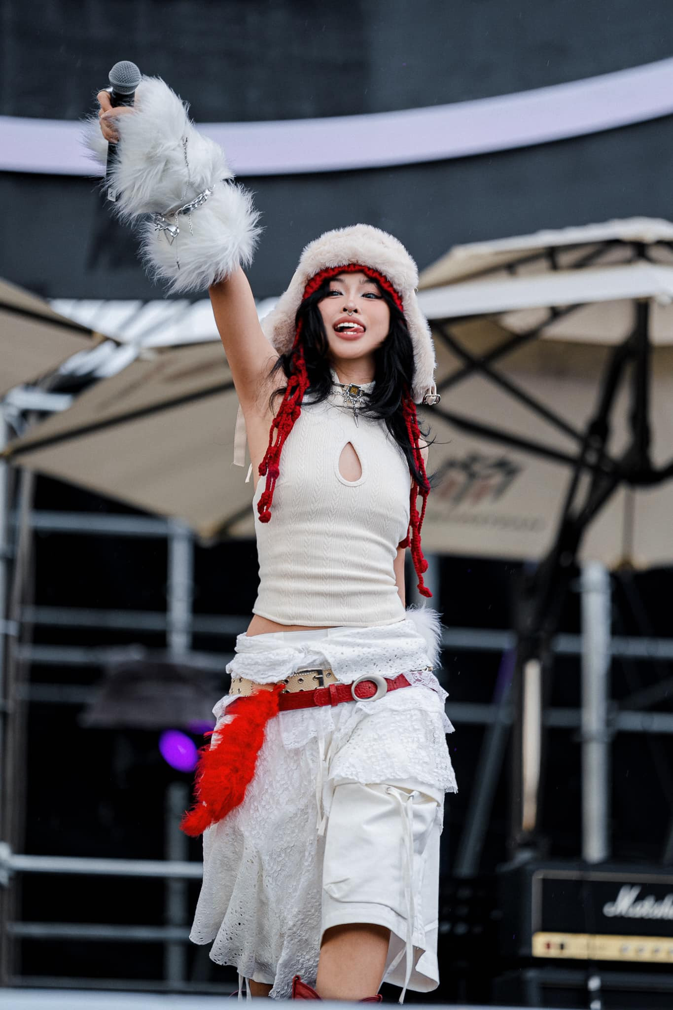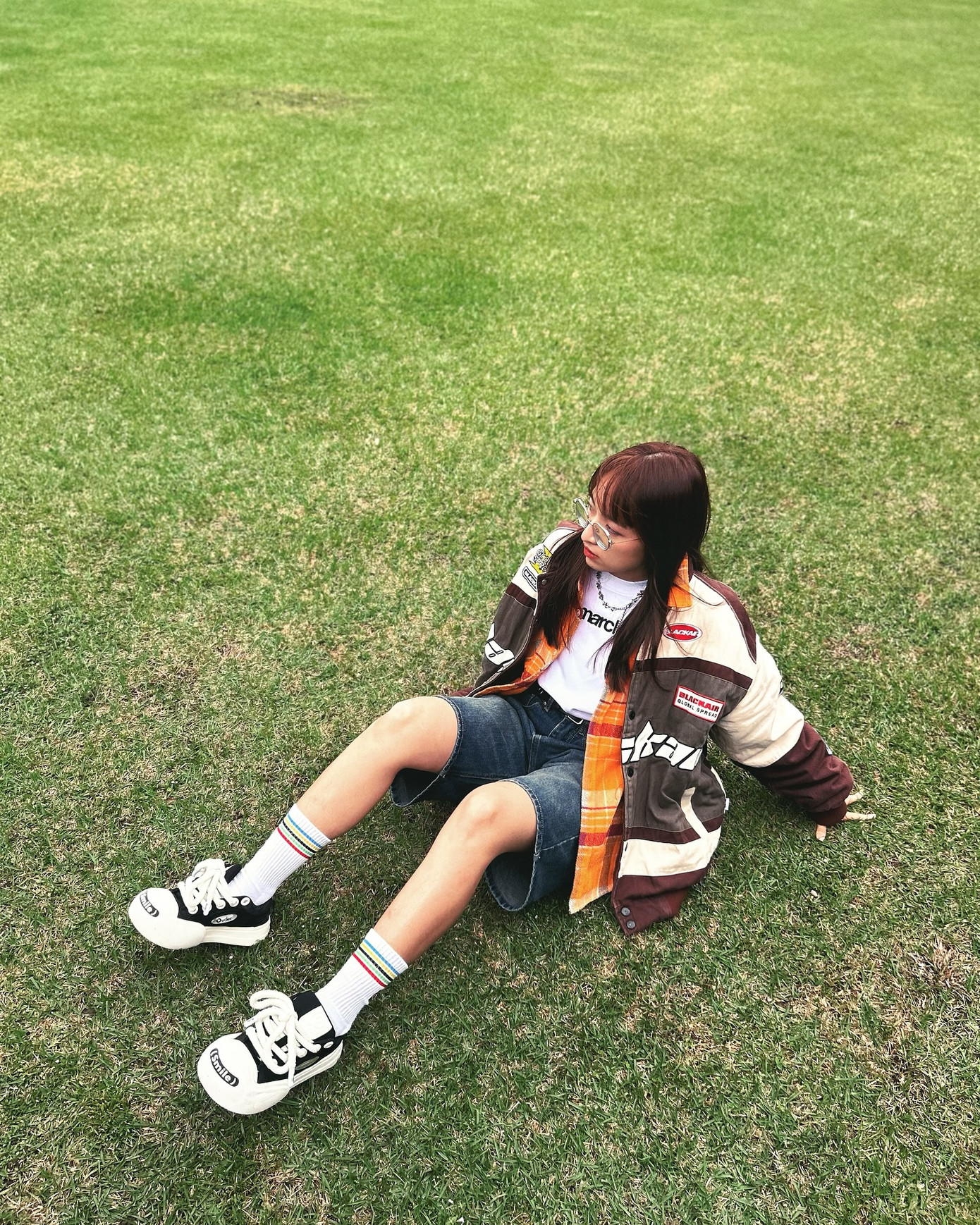 Liu Grace "thích mê" những bộ cánh có gam màu rực rỡ như cam, xanh dương, đỏ... lồng ghép các yếu tố Y2K như quần cạp trễ, kiểu tóc rẻ quạt.