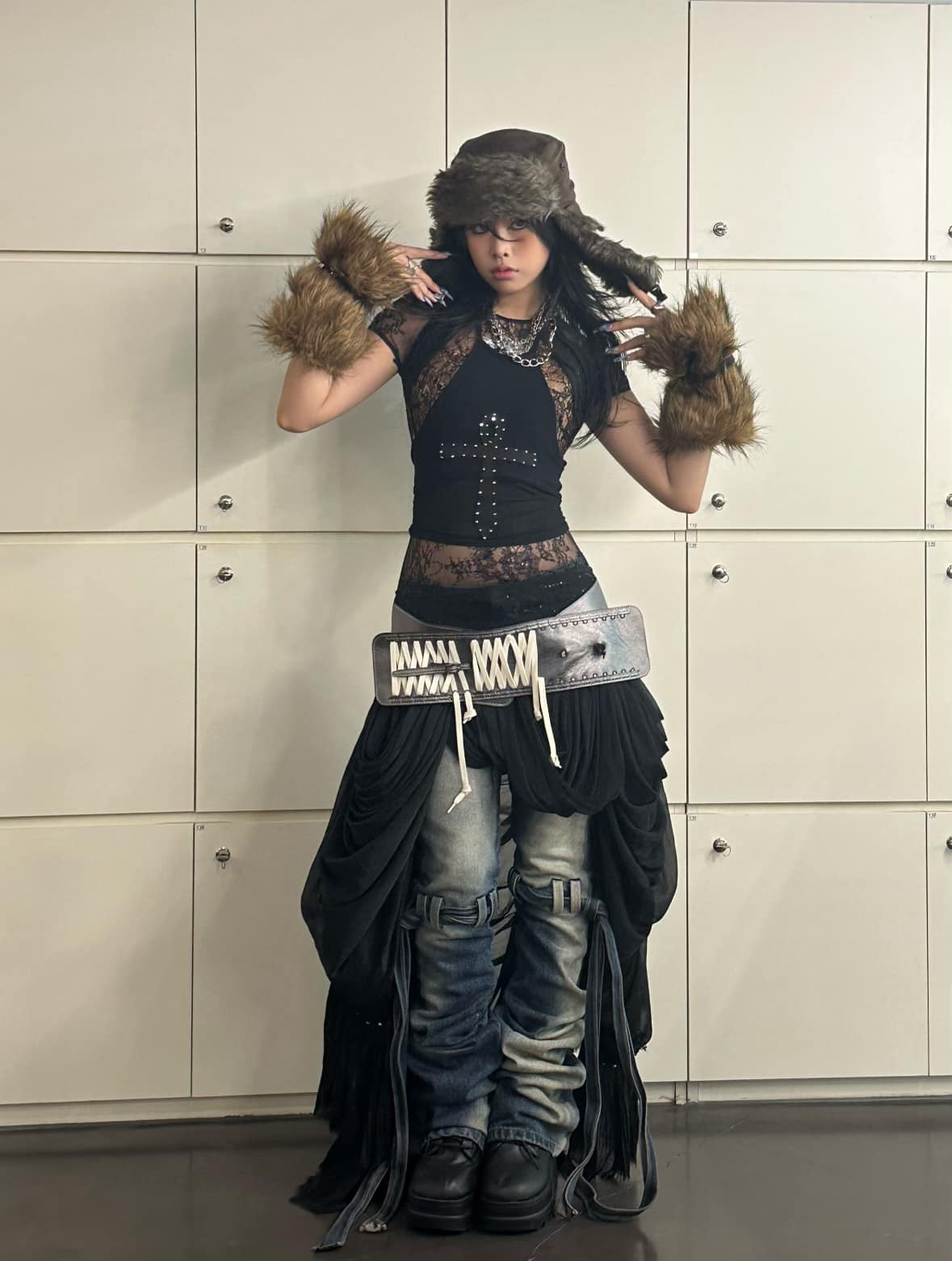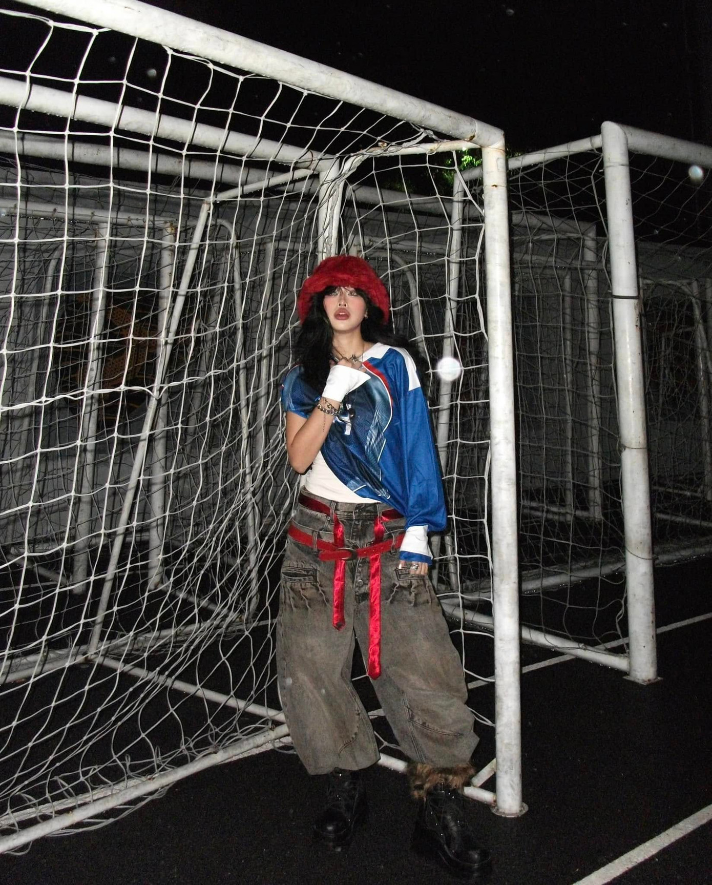 Một "em xinh" khác cũng là tín đồ của xu hướng maximalism, Y2K là 52hz. Nữ nghệ sĩ Indie ứng dụng nhuần nhuyễn công thức phối đồ Big Pants, Little Shirt (áo ôm, quần ống rộng), kết hợp thêm các chất liệu ren, lông, nhung để tạo ra hiệu ứng thị giác bắt mắt. Giọng ca Mê Cung Tình Yêu biến chiếc mũ lông Ushanka trở thành đặc điểm nhận diện trong mỗi lần xuất hiện.
