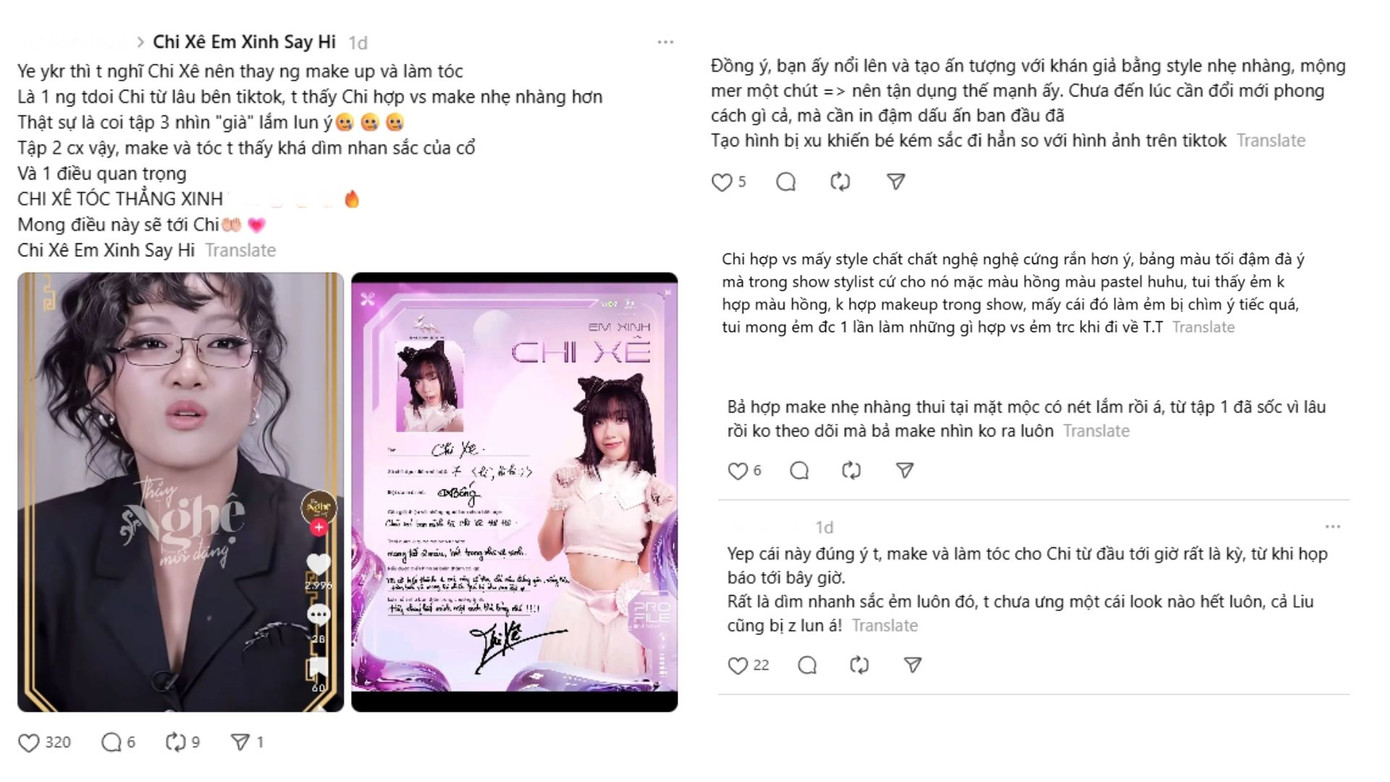 Trên mạng xã hội Threads, nhiều khán giả kỳ vọng ê-kíp tạo hình sẽ lắng nghe góp ý, điều chỉnh phong cách để hai "em xinh" có nhiều cơ hội tỏa sáng hơn trong chặng tiếp theo của cuộc thi.