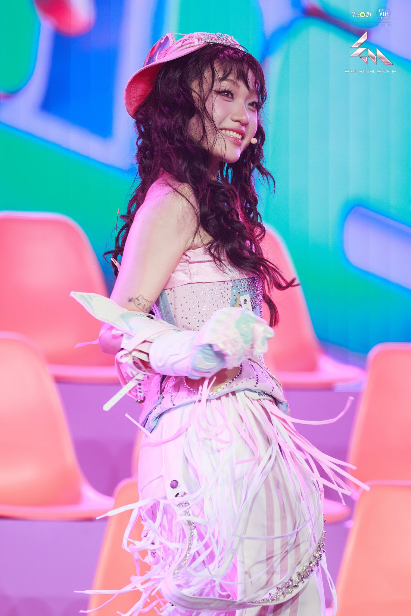 Tương tự, Chi Xê gây tiếc nuối vì sụt giảm phong độ ăn mặc trong Em Xinh “Say Hi”. Kiểu tóc xoăn xù, lớp trang điểm nặng tới các tạo hình sân khấu rườm rà bị cho là “phong ấn” nhan sắc của nữ nghệ sĩ.