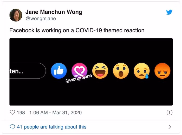 Cụ thể, nữ lập trình viên Jane Manchun Wong, người đã nhiều lần tự mình tìm ra những lỗ hổng hoặc tính năng chưa được công bố của Facebook, đã phát hiện mạng xã hội này đang phát triển biểu tượng cảm xúc “Stay Home” (Ở nhà). Facebook cũng xác nhận rằng họ đang phát triển biểu tượng này, nhưng từ chối cho biết thông tin chi tiết hoặc thời gian ra mắt chính thức.