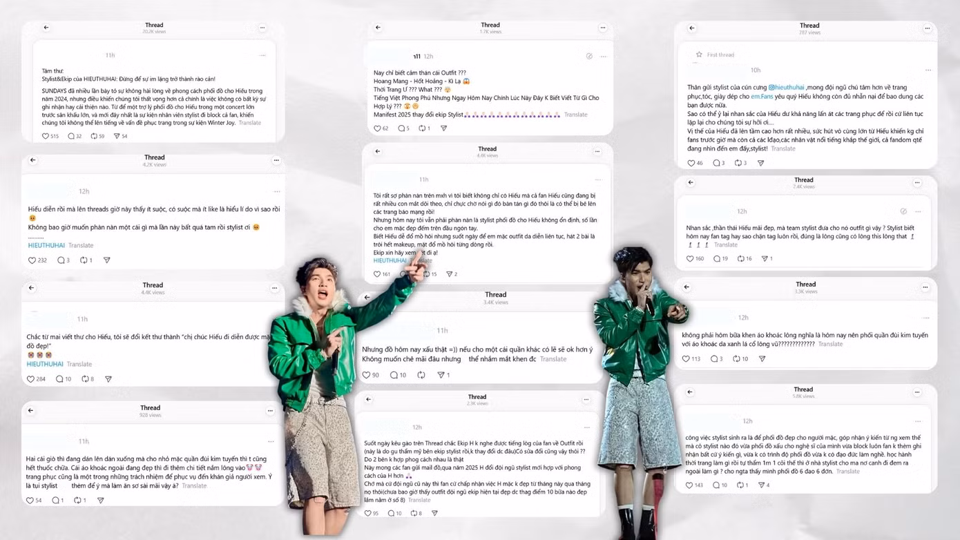 Một số khán giả thể hiện sự bức xúc khi biết rằng người phụ trách một số tạo hình của HIEUTHUHAI thời gian gần đây chỉ là trợ lý stylist. Thay vì tiếp nhận góp ý từ fan, người này bị phát hiện đã xóa/ ẩn nhiều bình luận trái chiều, sau đó khóa chức năng nhắc tên trên trang cá nhân.