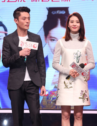 Trước khi đến sân bay, Hoắc Kiến Hoa dự buổi họp báo phim "Nữ y Minh Phi truyện" cùng Lưu Thi Thi.