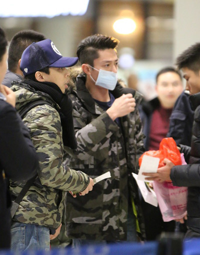 Hôm 20/1, Hoắc Kiến Hoa (đeo khẩu trang) tới sân bay ở Thượng Hải, Trung Quốc.