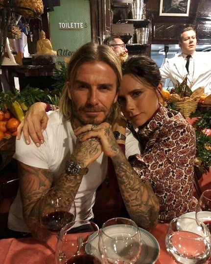 Cách đây ít giờ, Bà Becks đăng ảnh tình cảm bên chồng tại một nhà hàng ở Paris. Trên trang cá nhân, Vic viết "Những nụ hôn từ Paris".