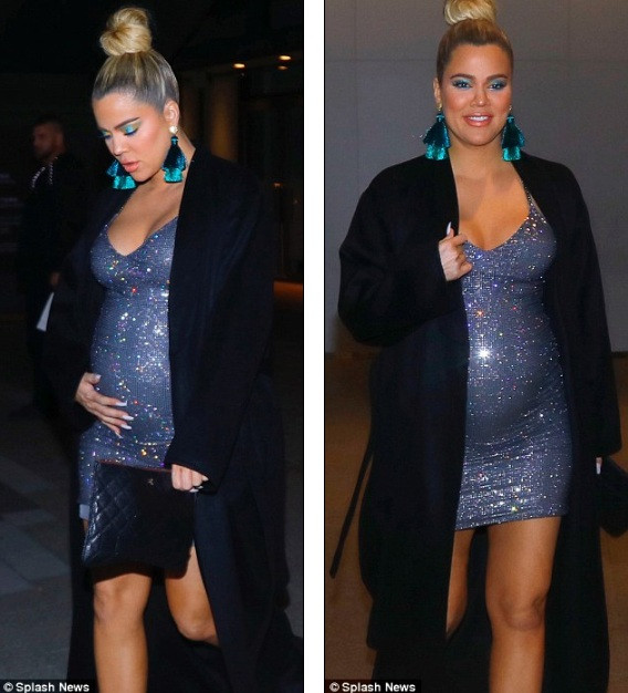 Cô em Khloe đang mang bầu 8 tháng vẫn diện váy ngắn bó sát.