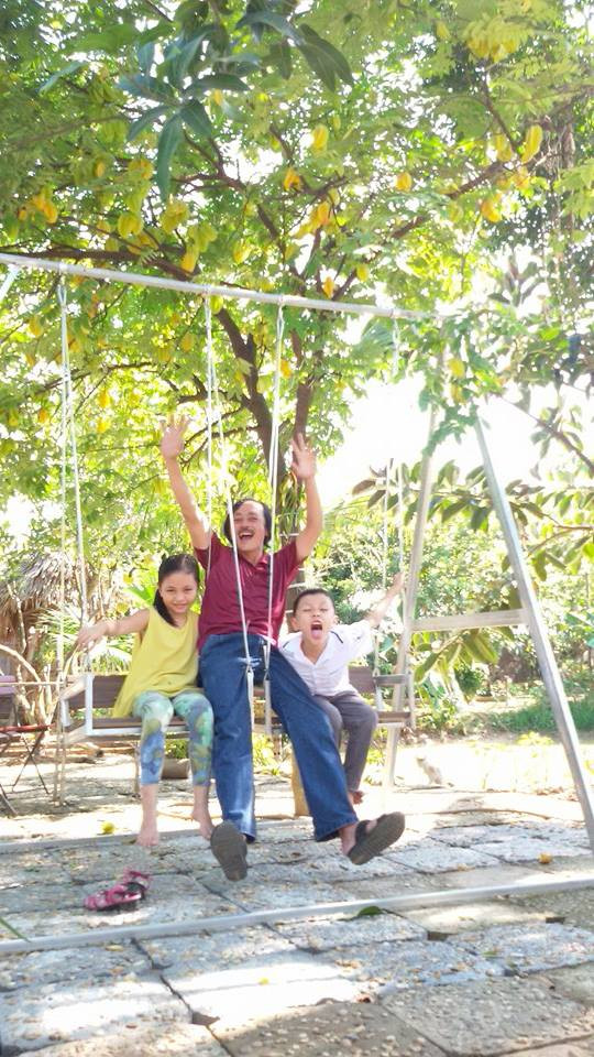 Phần thời gian còn lại, anh dành để chơi đùa cùng 2 đứa con đáng yêu, tinh nghịch.
