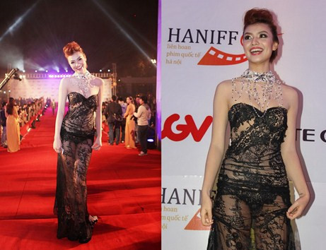 Tiếp đến vào tháng 11/2012, xuất hiện tại Liên hoan phim quốc tế Hà Nội, Hồng Quế gây sốc khi diện trang phục váy ren đen xuyên thấu, lộ nội y và bất nhã tạo dáng trên thảm đỏ. Sau scandal váy áo trong sự kiện tầm cỡ quốc tế này, nhà thiết kế nổi tiếng Minh Hạnh phải tuyên bố "dạy lại Hồng Quế" để mong muốn học trò trưởng thành và đi đúng hướng.