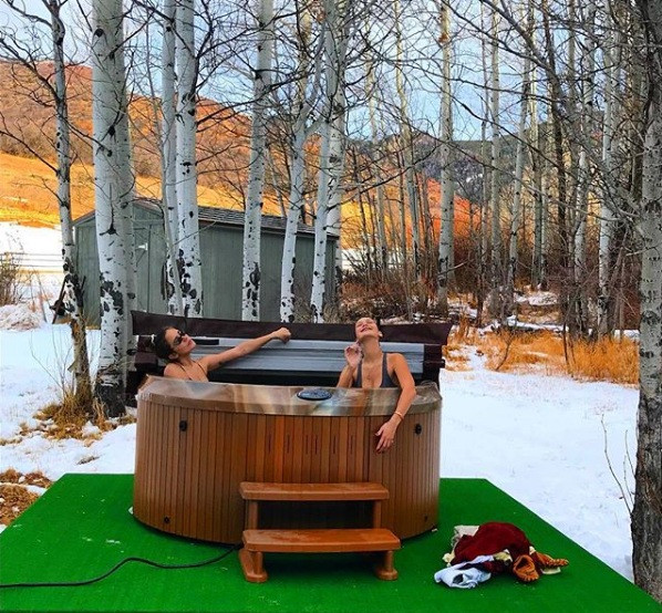 Nàng mẫu Bella Hadid tận hưởng, thư giãn tắm nước nóng cùng những người bạn ở vùng Aspen, Colorado (Mỹ).
