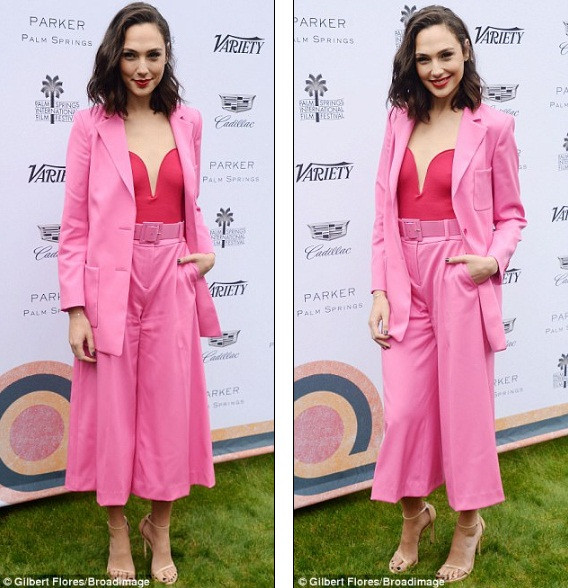 Gal Gadot diện trang phục hồng bắt mắt nằm trong BST xuân hè 2018 của Oscar de la Renta.