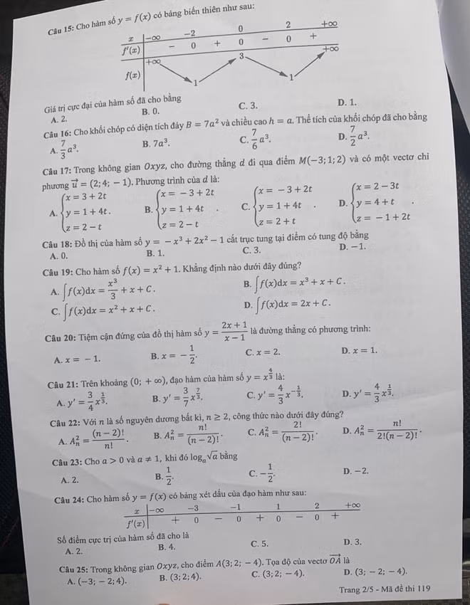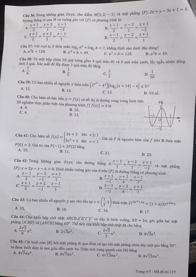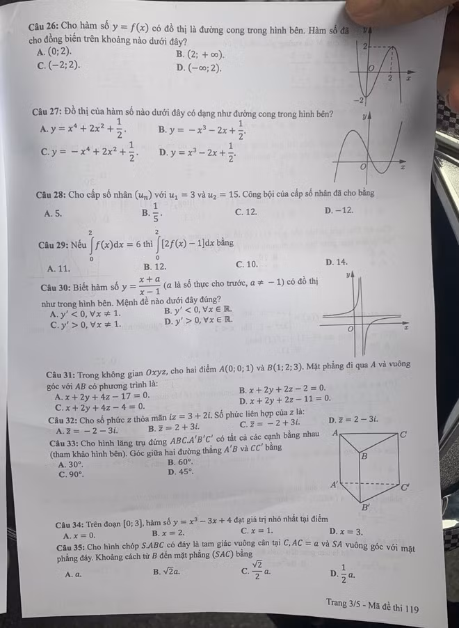 | Mã đề 119 thi môn Toán |