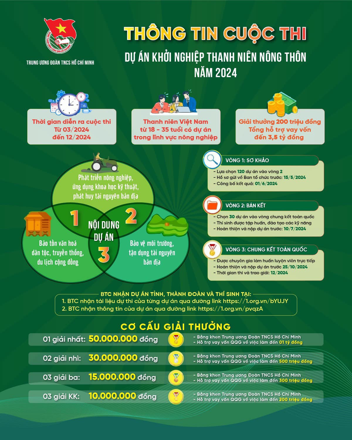 T.Ư Đoàn tổ chức cuộc thi Dự án khởi nghiệp thanh niên nông thôn năm 2024 dành cho các bạn trẻ từ 18 – 35 tuổi có dự án khởi nghiệp trong lĩnh vực nông nghiệp.