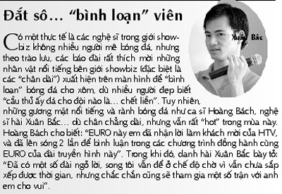 Xem ra, khi không khí EURO đã hừng hực trên các trang báo thể thao trong nước thì với giới showbiz Việt, bóng đá vẫn còn ở khá xa xôi.