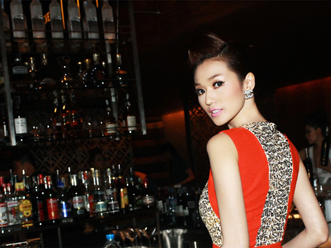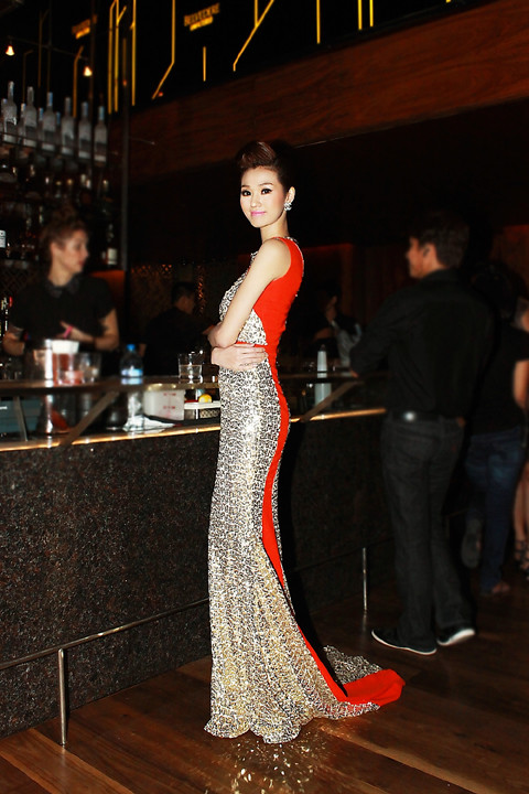 | Khánh My tranh thủ tạo dáng trong buổi tiệc. |