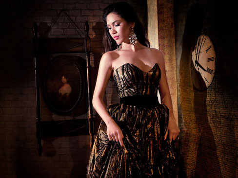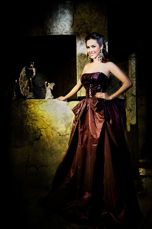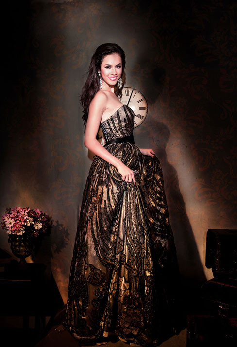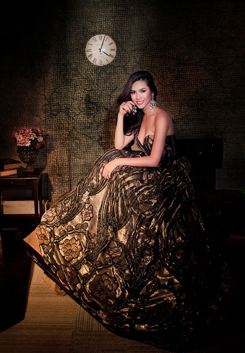 Trước ngày lên đường, Hoàng My cùng ê kíp đã thực hiện bộ ảnh với hình ảnh của một tiểu thư ngọt ngào và kiêu sa trong trang phục dạ hội của NTK Lê Thanh Hòa dưới ống kính của nhiếp ảnh Đặng Minh Tùng.
