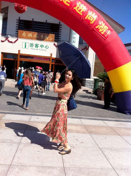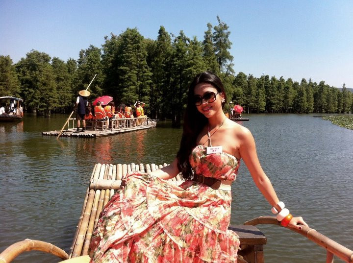 Cô và các người đẹp Miss World đã có một ngày dạo chơi tại hồ Shanghu, nơi có phong cảnh vô cùng lãng mạn cùng hồ sen tuyệt đẹp.