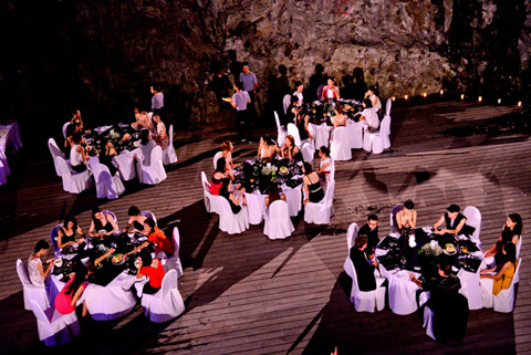 Hang Trống nằm tại Vịnh Hạ Long có nhiều nhũ đá đã tạo nên quang cảnh rất đẹp, bữa tiệc tối trong hang như lộng lẫy hơn và trang hoàng hơn với những ánh đèn nhẹ nhàng cùng với ngọn nến lung linh thắp sáng xung quanh hang.