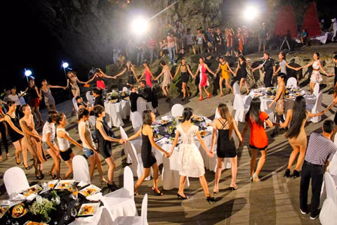 Một số hình ảnh các thí sinh và giám khảo dự tiệc trong hang Trống: