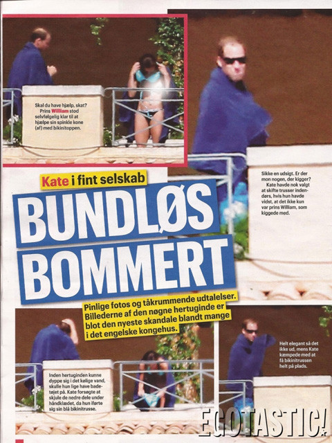 Mặc kệ những nỗ lực của hoàng gia Anh trong việc ngăn cản những bức ảnh tế nhị và riêng tư của công nương Kate và hoàng tử William, tờ tạp chí lá cải của Đan Mạch vẫn cho đăng tràn lan những bức ảnh này trong ấn phẩm mới của mình.
