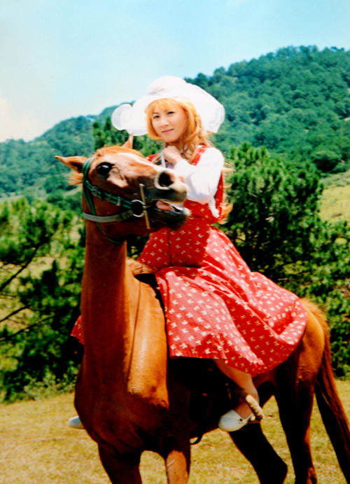 | Trizzie Phương Trinh và Lê Văn Nghĩa trổ tài phi ngựa trên Đà Lạt. |