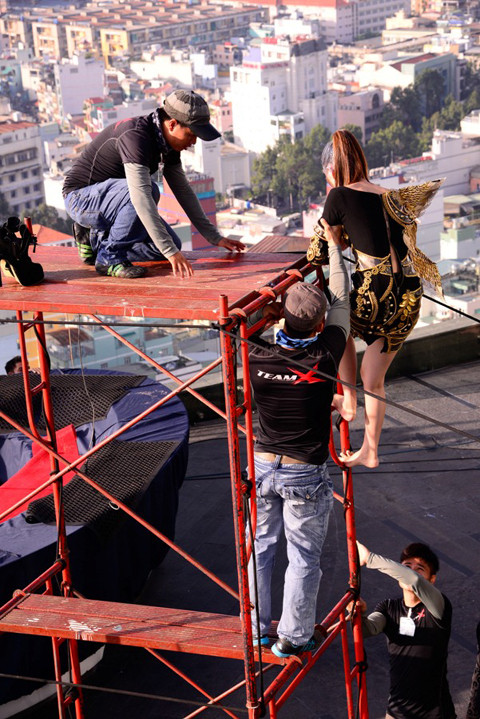 | Các thí sinh phải trải qua thử thách khó nhằn khi chụp ảnh trên độ cao 200m. |