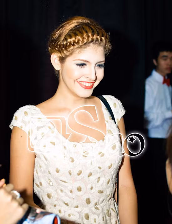 Tối qua, cô nàng Andrea cùng tay trong tay cùng Baggio đi xem ra mắt phim, với mái tóc tết vòng quanh trán khiến cho Andrea trở nên xinh đẹp lung linh hơn thường lệ.