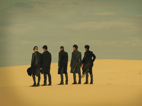 TPO - Năm chàng trai trút bỏ hình tượng dễ thương để hóa thân như những chiến binh vũ trụ đứng trên đồi cát hùng vĩ, bên cạnh “bạn diễn” là những động vật hoang dã như trăn, đại bàng…