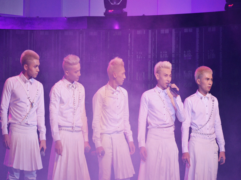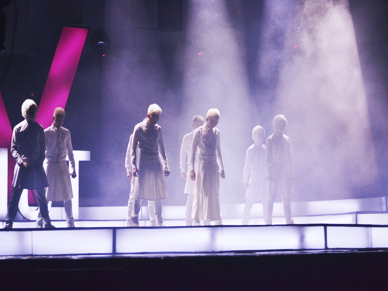 Với mái tóc trắng và trang phục màu trắng được chuẩn bị kỹ lưỡng và lạ mắt, nhóm 365 thật sự làm khán giả xem chương trình bất ngờ và hào hứng .