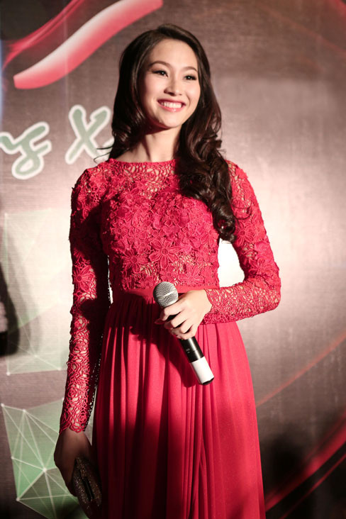 TPO - Vào tối qua, 20-12, Hoa hậu Việt Nam Đặng Thu Thảo đã xuất hiện tại sân khấu của lễ trao giải Làn Sóng Xanh trong một bộ đầm ren đỏ lộng lẫy và xinh đẹp.