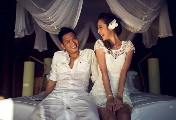 Nhưng mới đây kiều nữ xinh đẹp đã chia sẻ trên trang facebook cá nhân của mình những hình ảnh nằm trong bộ ảnh cưới cực độc và lãng mạn của cô và doanh nhân Đức Hải.