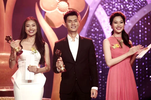Ở hạng mục Diễn viên điện ảnh được yêu thích nhất, Hoa hậu Thu Thảo và ca sĩ Quang Dũng đã xướng tên Ngô Thanh Vân và Nhan Phúc Vinh.