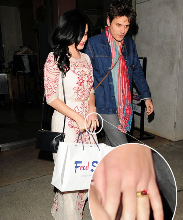 Đúng ngày Valentine, các tay săn ảnh đã bắt gặp Katy Perry đi ăn tối với bạn trai John Mayertại nhà hàng Vincenti ở Brentwood và điều khiến mọi người chú ý hơn cả là chiếc nhẫn lấp lánh trên bàn tay trái của nữ ca sĩ xinh đẹp.