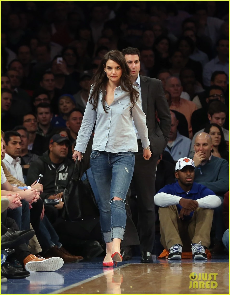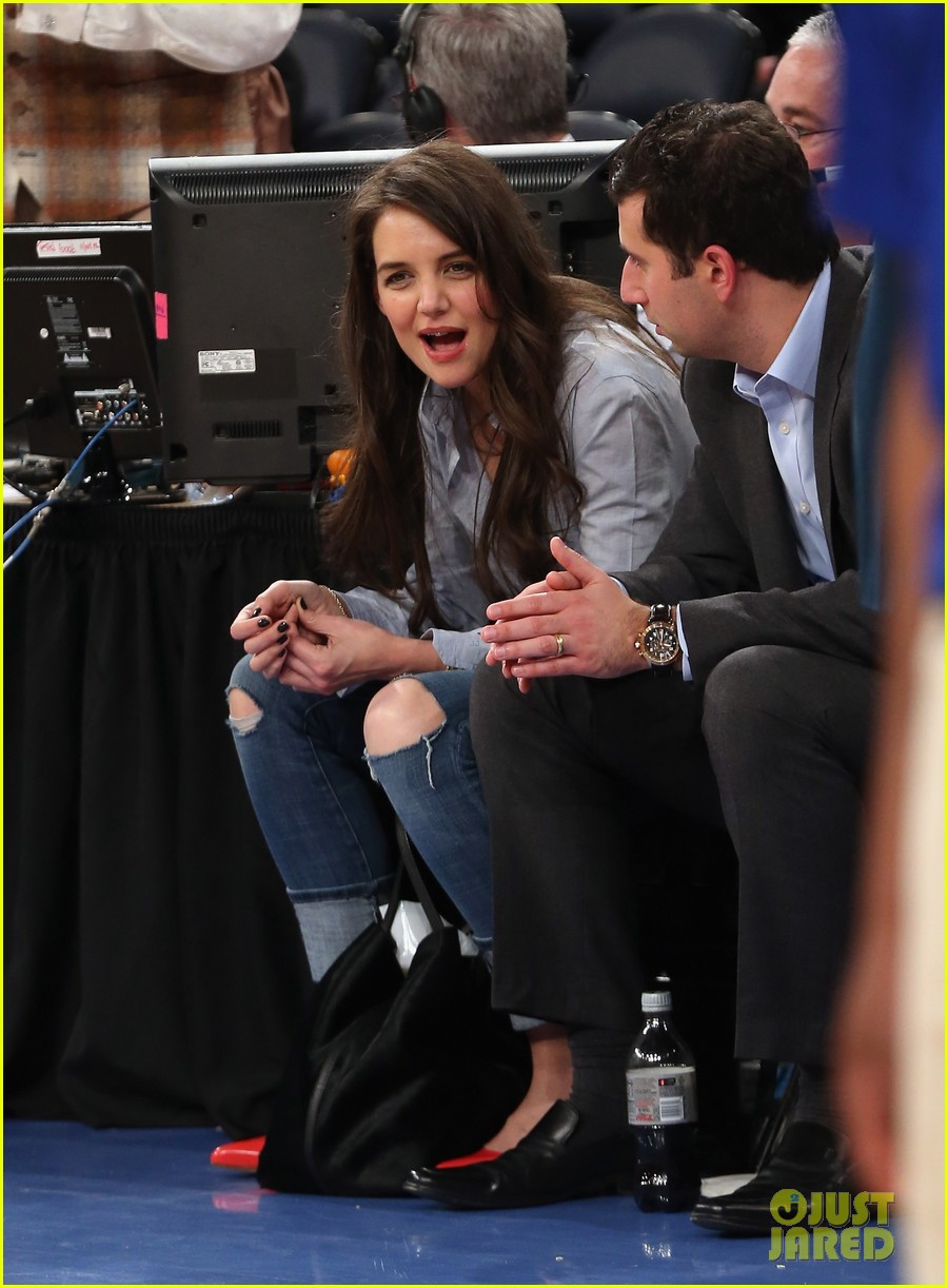 TPO - Tranh thủ việc Suri đi nghỉ với Tom Cruise, Katie Holmes đã có mặt cùng nam diễn viên Adam Schweitzer đi xem trận bóng rổ ở New York Knicks. Adam đang là quản lý mới của Katie và đã lập gia đình.