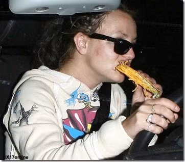 | Britney vừa lái xe vừa ăn rất 'khốn khổ'. |