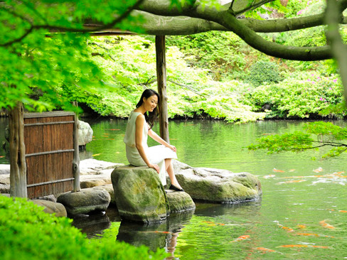 Mai Giang cho biết cô rất thích thú khi được dẫn đi tham quan Vườn Thượng Uyển Happoen, một trong những khu du lịch sinh thái nổi tiếng tại Tokyo để thưởng thức đặc sản trà đạo trứ danh nơi đây.