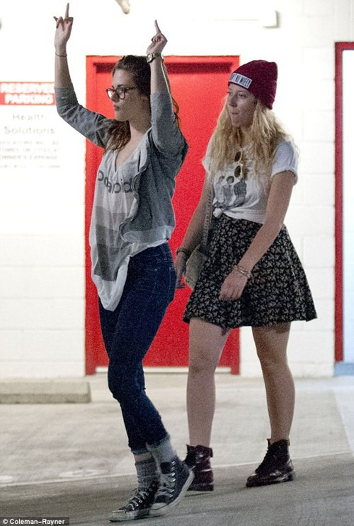 Kristen xuất hiện nhợt nhạt và thiếu sức sống, đầu tóc bù xù, tuy nhiên, điều đáng chú ý nhất là hành động phản cảm của cô nàng khi liên tục giơ ‘ngón tay thối’ về phía tay săn ảnh trong một khoảng thời gian khá lâu.