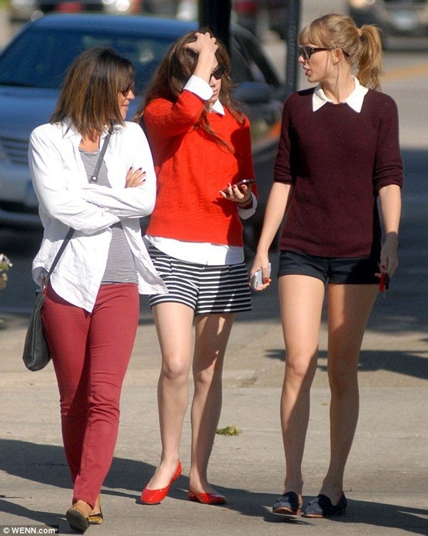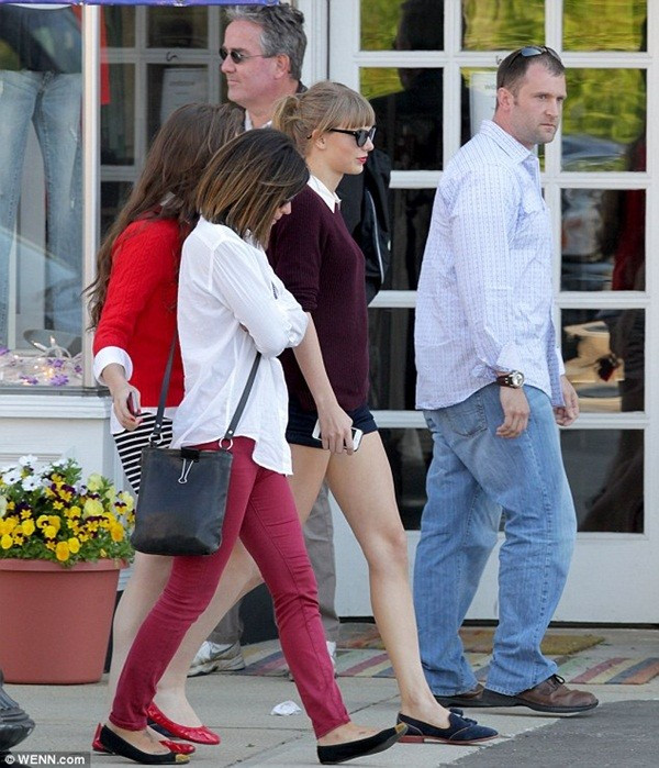 Vừa qua, những hình ảnh của Taylor Swift đi dạo cùng hai cô bạn Hailee Steinfeld và Jessica Szohr tại Rhode Island đã lọt vào ống kính của các tay săn ảnh. Diện trang phục trẻ trung và quần soóc ngắn, Taylor Swift đã khoe đôi chân dài thon gọn đáng ngưỡng mộ hơn hẳn so với hai cô bạn.