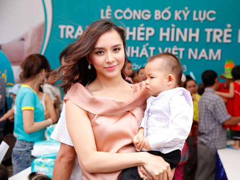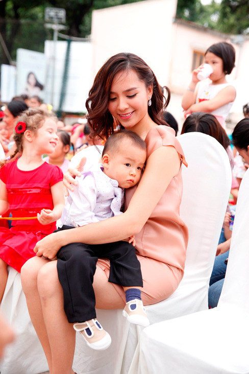 Xuất hiện tại sự kiện này, bà mẹ trẻ gây ấn tượng với mọi người bởi vẻ ngoài xinh đẹp và nụ cười thân thiện. Trong khi đó, do mới ốm dậy nên cậu quý tử Quốc Anh có vẻ kém tươi. Cậu bé luôn được mẹ dỗ dàng bằng những lời khen, cổ vũ để luôn mỉm cười khi các ống kính hướng về mình.