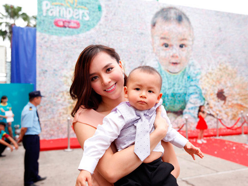 TPO - Nhân ngày Quốc tế thiếu nhi 1/6, Á hậu Hoàn vũ Việt Nam 2008 đã đưa con trai Quốc Anh tham dự chương trình xác nhận kỷ lục “Bức tranh ghép hình trẻ em lớn nhất Việt Nam” tại TP.HCM.