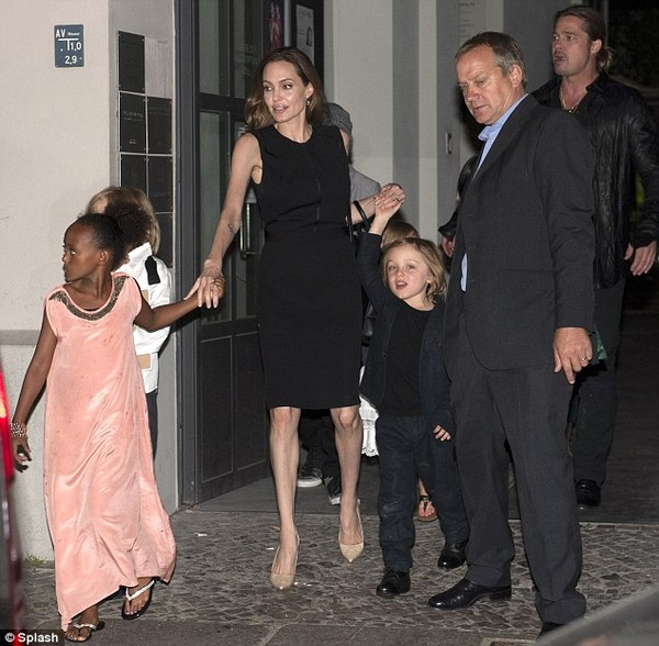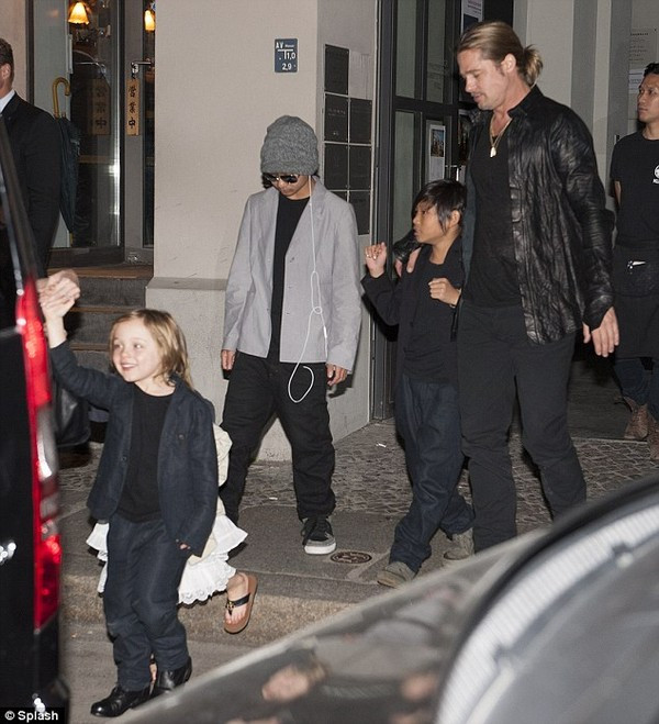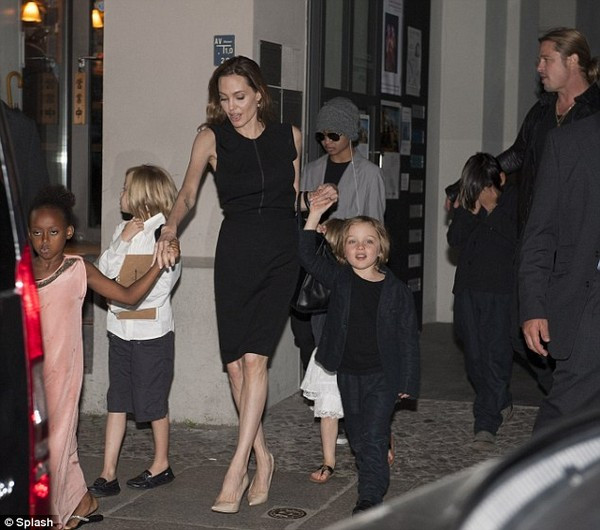 Những hình ảnh của Angelina Jolie và gia đình đã lọt vào ống kính phóng viên khi nữ diễn viên ra ngoài đi ăn tối để kỷ niệm sinh nhật lần thứ 38 của mình tại một nhà hàng Kuchi ở Berlin.