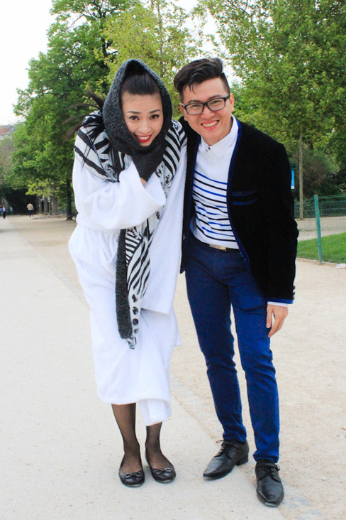 | Vân Ngô được các nhà thiết kế thay đồ chớp nhoáng dưới chân tháp Eiffel. |