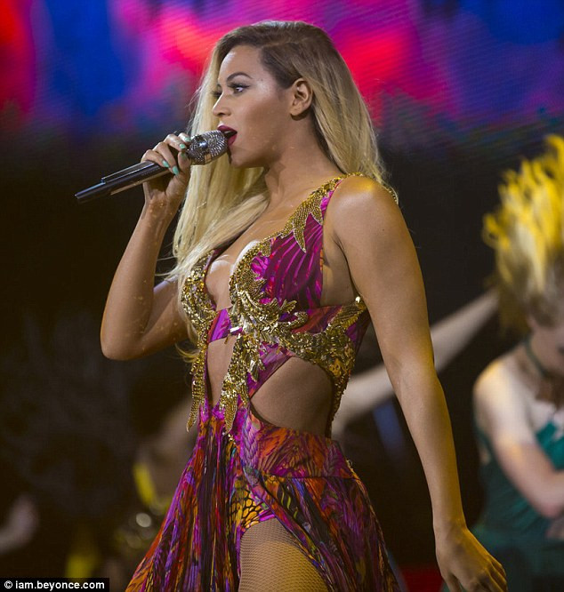 | Tạo hình đầy ấn tượng của Beyonce trong thiết kế của 'phù thủy thời trang' Roberto Cavalli. |