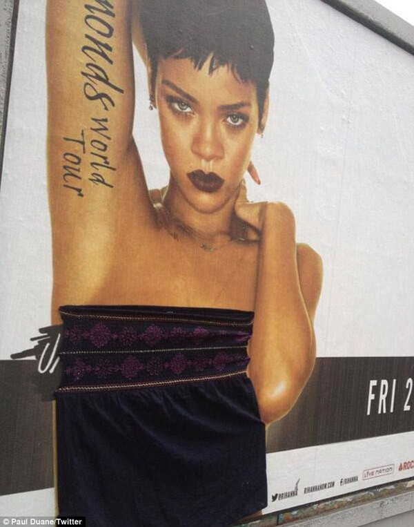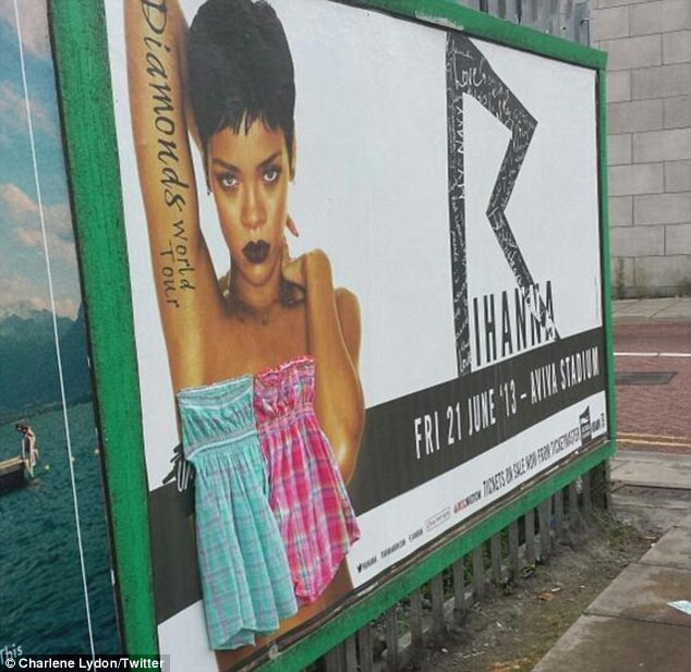 Thực chất đây là những tấm poster quáng bá cho tour lưu diễn Diamonds World Tour của Rihanna được dán xung quanh đường phố Ai-len .