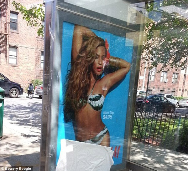 Trước đây, hình ảnh tại chỗ công cộng nữ diva Beyonce cũng đã bị người dân che bớt một phần lại vì cho rằng quá nhạy cảm.
